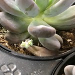 Sedum all have different bloom times and colors ranging from pink, red and yellow. Sempervivums will bloom after the second or third year. A flower stalk will shoot up from the center of the main rosette with a cluster of flowers. After the flower dies, gently twist off the stalk. The main rosette has put on new offsets that will fill in.