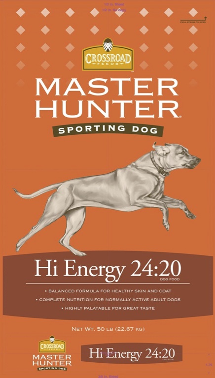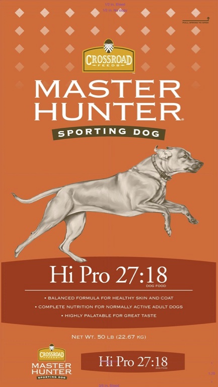 Due to customer demand, we continue to add to our extensive pet food lines. Introducing Crossroads Master Hunter Sporting Dog Food: Maintenance 22:12, Hi-Pro 27:18 and Hi-Energy 24:20 with quality meat and bone meal as #1 ingredient in all 3 formulas. NO SOY which is what economy minded sporting enthusiasts are looking for in a dog food. Hi-Energy and Hi-Pro are for all lifestyle ages, including puppies!